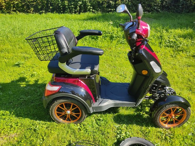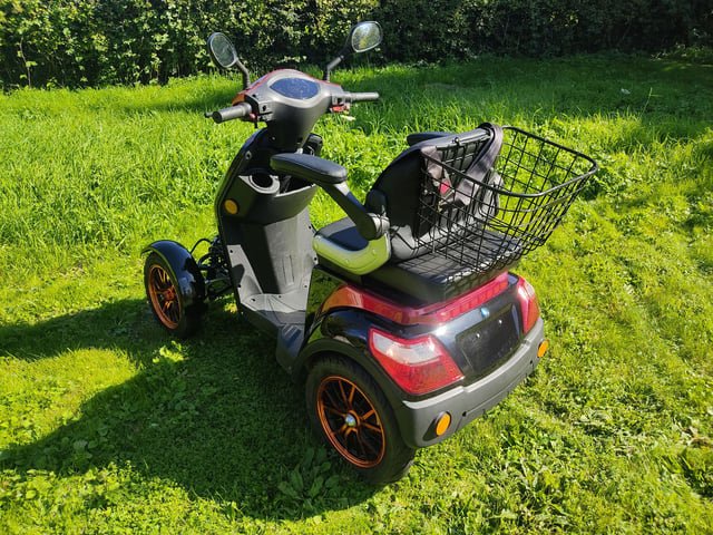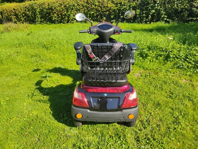 Convenience: Keyless start, parking brakes, speed control for road or footpath use, and a large rear basket for storage.