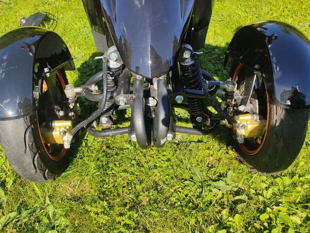 Safety: Self-balancing, front and rear suspension, full lighting system (headlights, taillights, indicators), rear-view mirrors, and an integrated security system with a key fob and alarm.